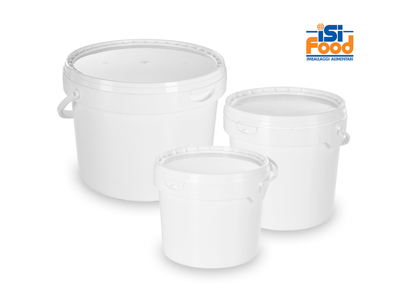 Die Behälter für Ricotta-Creme der Marke ISI Food sind mit einem praktischen Druckdeckel und einem ergonomischen Kippgriff ausgestattet, der die Handhabung erleichtert. Nicht nur praktische und handliche, sondern auch sichere Behälter: das Siegel der Unverletzlichkeit beim ersten Gebrauch befindet sich auf dem oberen Band dieser Verpackung.