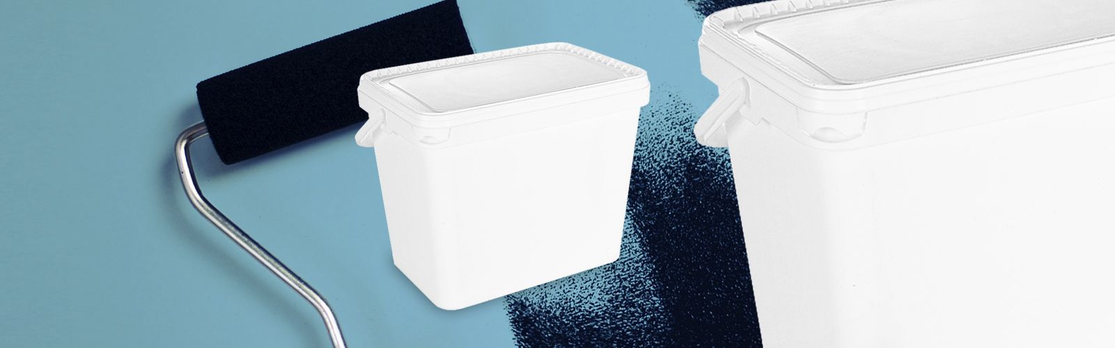 RET10 is the rectangular-based packaging made of the highest quality Polypropylene, a material suitable for contact with paint because it does not alter its properties and protects it from external moisture. The packaging has a first-use seal and a practical push lid with a swing handle for easy transport.