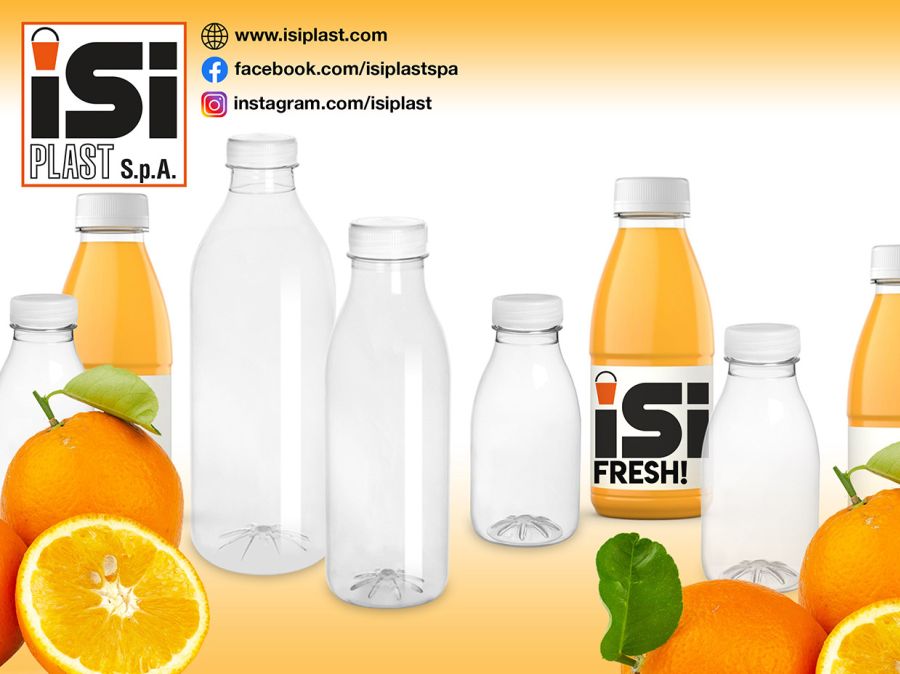 ISI Plast per rispondere a pieno all’esigenza del packaging idoneo al contenimento delle spremute presenta la sua linea di bottiglie in plastica e propone sul mercato 3 diversi formati: