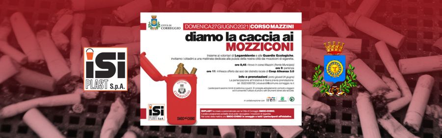 Domenica 27 giugno 2021 è in programma la prima giornata ecologica organizzata in collaborazione con il Comune di Correggio (RE) e Legambiente, per la raccolta di rifiuti e mozziconi dispersi nell’ambiente.